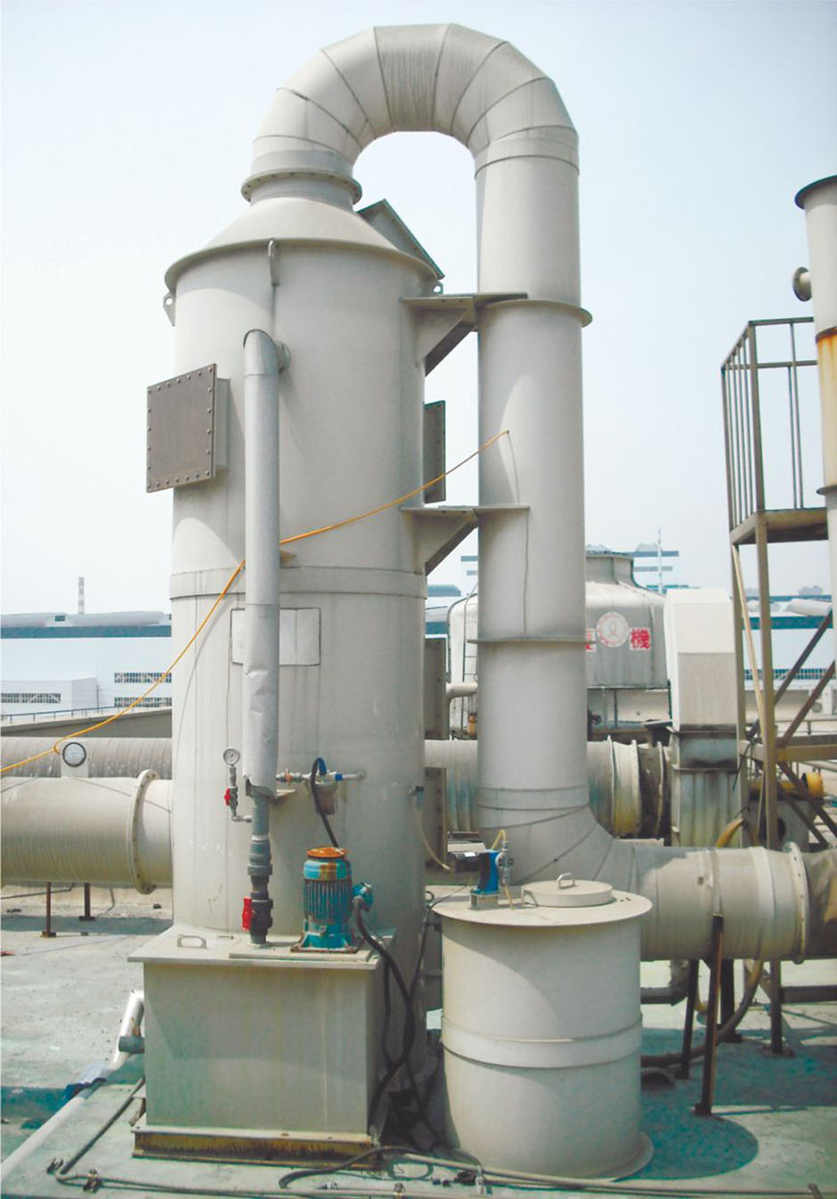 本公司生产的多功能立式酸雾废气净化塔是以pp、pvc或玻璃钢为材料的废气净化设备,具有设计合理,采用新颖填料,阻力损失小,表面积大,化学反应完善,气液比选用合理,吸收净化效率高,耐腐蚀,耐老化性能好,便于安装维护等特点。广泛用于:电镀、五金、电器、医药、印染、电讯、钟表等机械加工行业中生产的NOX、XO2、H2SO4、HCI、HF、SIF4、CO2等有毒有害气体的净化;并可适用于氨、硫化氢、酚光气、甲醛、甲醇、胺类等恶臭物质的除臭处理;中和净化效率90%以上。本设备制作优良,运行安全可靠;风机、水泵可根据用户现场灵活设计布局、维修方便、结构紧凑、占地少。